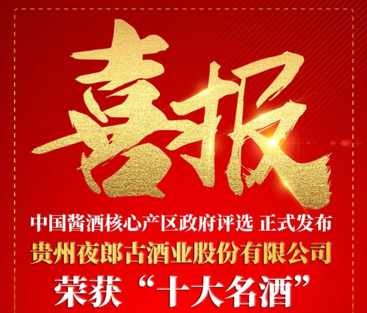 中国酱香白酒核心产区(仁怀)“十大名酒”发布暨 2022 中国酒都文化旅游季启动仪式在仁怀市酒都大剧院召开。夜郎古酒荣膺中国酱酒核心产区“十大名酒”。